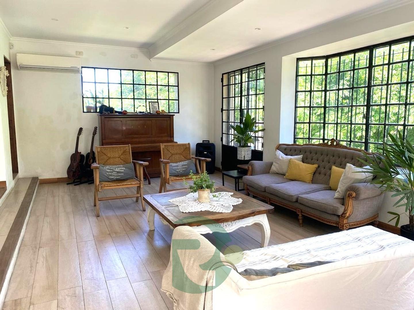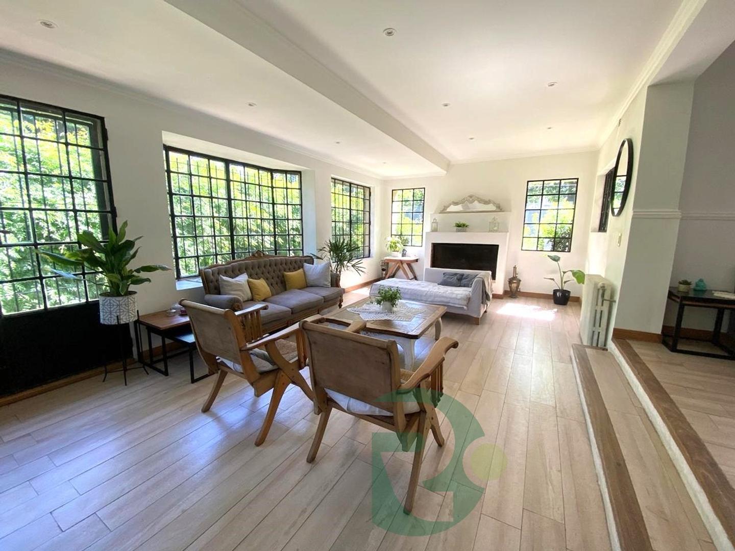 * Living en desnivel con hogar muy luminoso